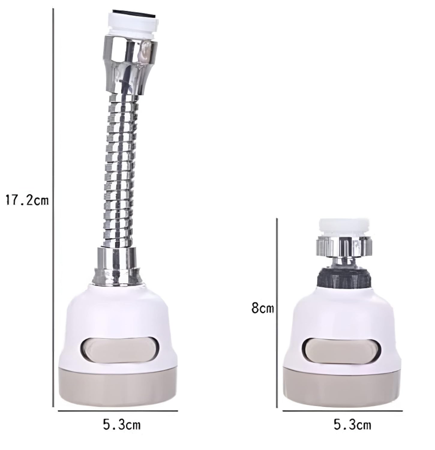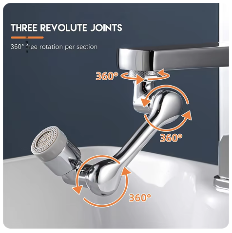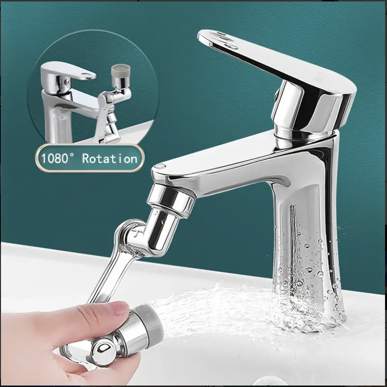 5-v-1 teleskopická hlavica na vodovodný kohútik, otočná o 360°